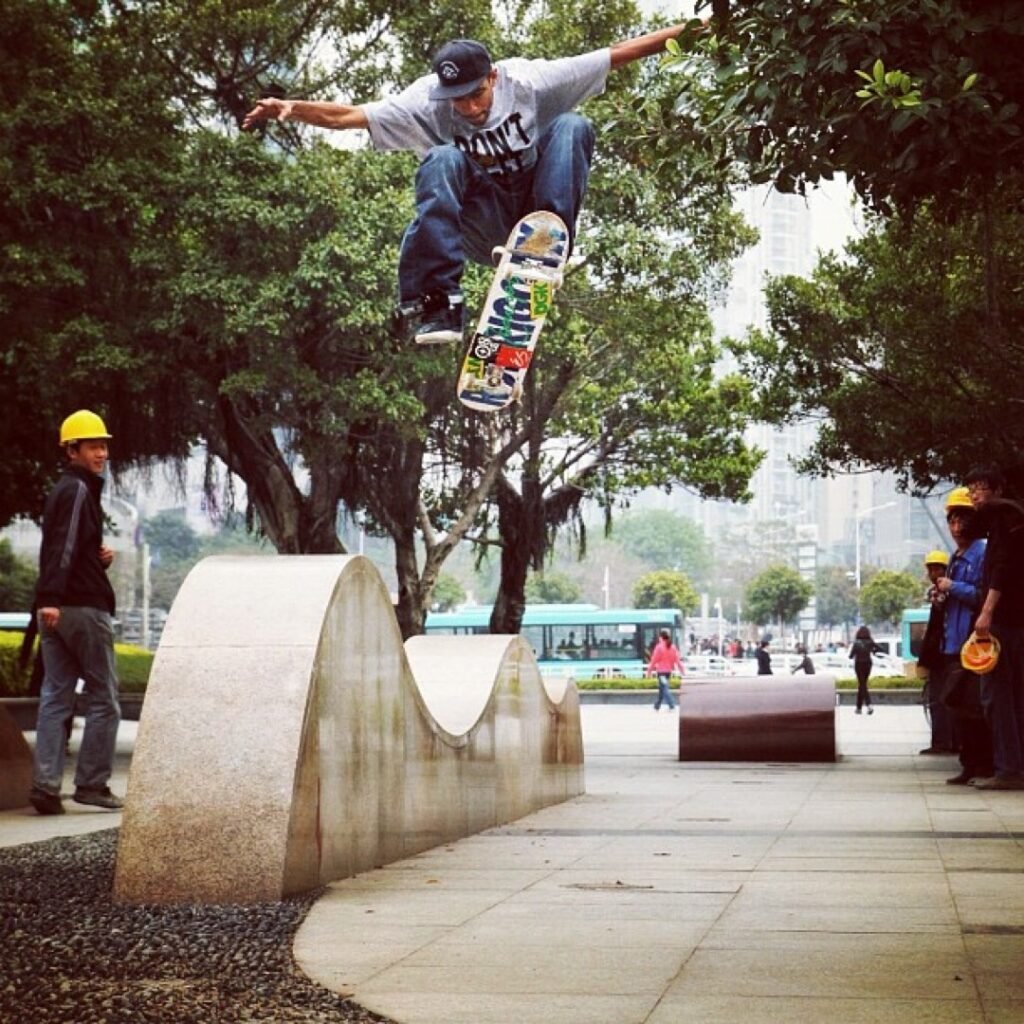 So it’s a whole scene. It’s super dense and they have this plaza, it’s where everyone grew up and learned to skate. They’re all amazing ledge skaters. But the plaza that they all go to, it’s all skatestopped. You can’t skate there, so it’s just crazy to me because of that.